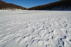 Dopo la mia escursione al lago Baccio di qualche settimana prima, decidiamo, insieme ai nostri amici Renato e Rosita con le loro figlie Benedetta e Elisabetta, di andare in gita “molto turistica” a vedere questo fenomeno naturale che solo con un inverno freddissimo come il 2016/2017 poteva verificarsi, cioè i due maggiori Laghi Modenesi completamente ghiacciati. Partiti in auto di buon mattino, sulla strada un incontro molto ravvicinato con due cervi adulti fa capire che la giornata sarà di quelle da ricordare. Arrivati a destinazione lasciamo l'auto e camminiamo una decina di minuti fino ad arrivare al Lago Baccio (1550 mt s.l.m.) che ci lascia letteralmente senza parole con il sole che riflette e fa brillare il ghiaccio e la vegetazione intorno. Giro completo del lago scattando diverse foto e ammirando questo stupendo paesaggio. Poi proseguiamo a piedi per circa 1 km fino ad arrivare al Lago Santo (1510 mt s.l.m.), il più grande bacino della provincia di Modena, molto più grande del Lago Baccio, si presenta anch'esso completamente ghiacciato. Anche qui giro del lago e foto di rito, ed anche questo scorcio di natura ci lascia senza parole. Poi la meritata pausa ristoro con piatti tipicamente invernali, infine il rientro, soddisfatti di questa semplice, ma affascinante giornata di svago, merito del paesaggio e dell'ottima compagnia.