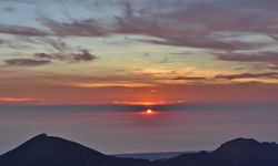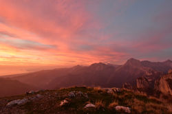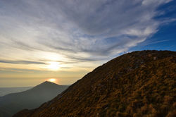 Bel pomeriggio di sabato, con una escursione semplice, ma ricca di attesa per fotografare per la prima volta il tramonto sulla vetta del Monte Matanna a 1330 mt. , la cima più alta di tutte le Apuane Meridionali nota anche per la sua caratteristica forma di piramide. Decido con Andrea di andare ugualmente anche se Benedetto per motivi di lavoro non potrà farci da guida, considerato che il rientro dovrà essere in notturna. Partenza ore 15.00 da casa con il meteo molto nuvoloso che ci scoraggia un po', e dopo circa un'ora di auto siamo al rifugio Matanna. Un'oretta di cammino seguendo il sentiero CAI num 5 e siamo in vetta, dopo una breve ma ripida salita. Il percorso è privo di qualsiasi pericolo quindi adatto veramente a tutti. Alle ore 17 arrivati alla Croce una forte nebbia ci fa capire che di foto probabilmente ne faremo poche. Poi dopo un po' di attesa ed una breve passeggiata per visionare la via del ritorno prevista per il versante opposto, inizia un fortissimo vento che in pochi minuti spazza via tutta la foschia e lascia intravedere il mare!! Iniziano allora i preparativi per assistere e fotografare il tramonto previsto verso le 18.15. Ancora pochi istanti e lo spettacolo è veramente affascinante, il cielo si colora prima di un forte arancione, poi un rosso quasi fuoco ed infine con il sole tramontato arriva quasi ad una tonalità violacea. Le foto scattate mi soddisfano molto ed anche Andrea è felice per aver assistito incantato a questo tramonto completamente soli in vetta a questo monte. Il rientro di notte passando per la Foce del Pallone è un'esperienza bella e carica di emozione facilitata anche dal percorso ancora più accessibile di quello della salita che è stato dalla parte opposta. Ogni volta che sali su in alto in montagna, qualsiasi sia la stagione, la sensazione è sempre quella di pace, tranquillità e rispetto per la natura.